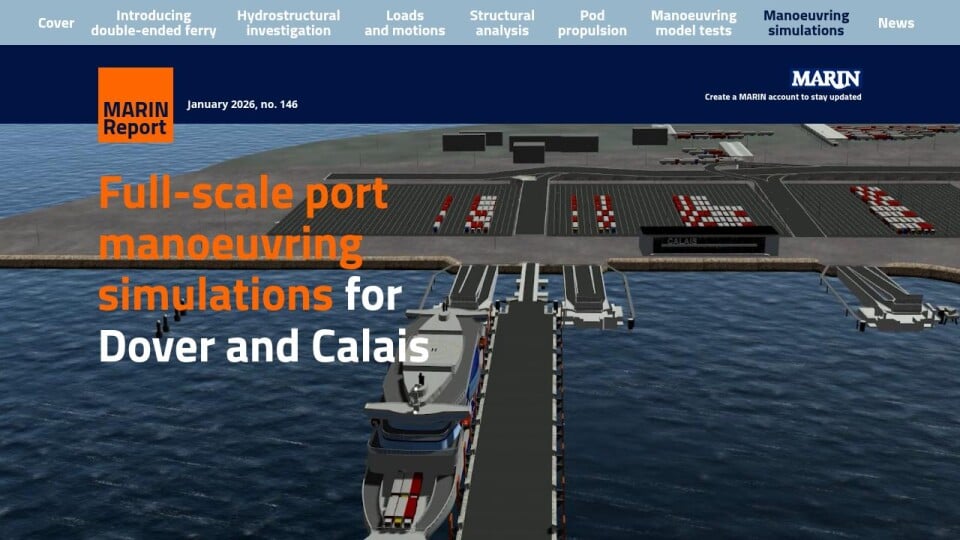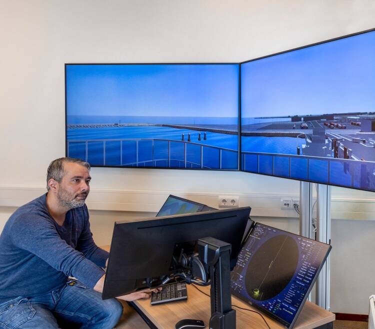 To test and verify the behaviour of the ferry in realistic conditions, two captains carried out various manoeuvres in a virtual environment on one of MARIN’s bridge simulators.